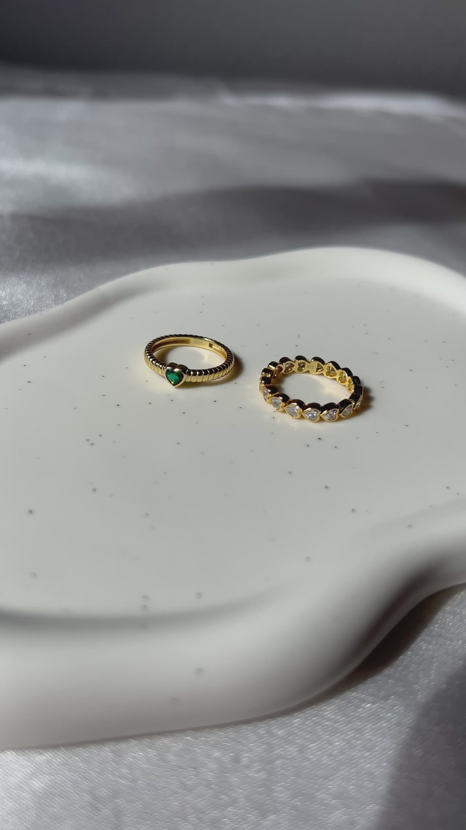 Anillo de plata de ley 925, bañado en oro de 18K, con corazones de zirconitas.