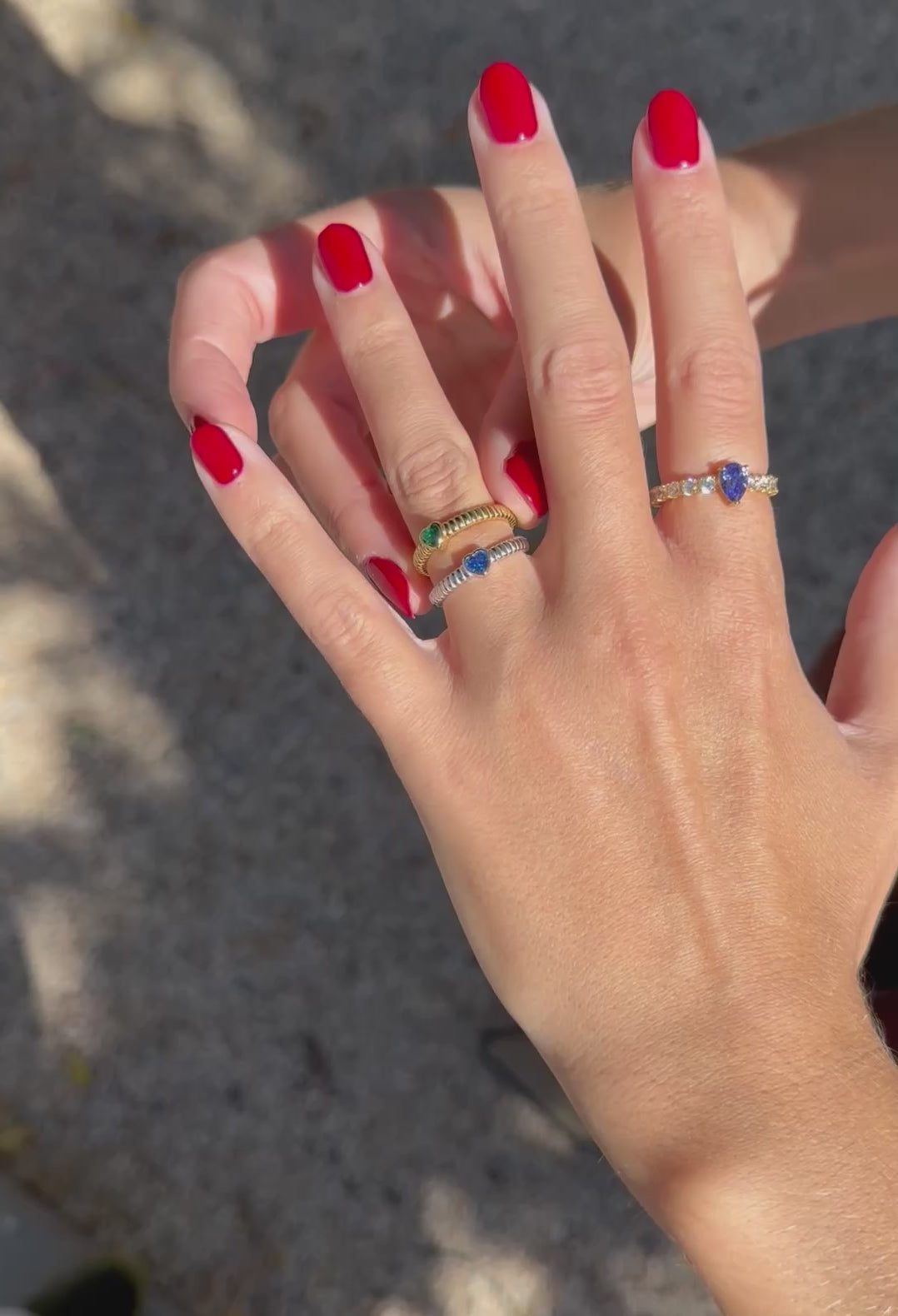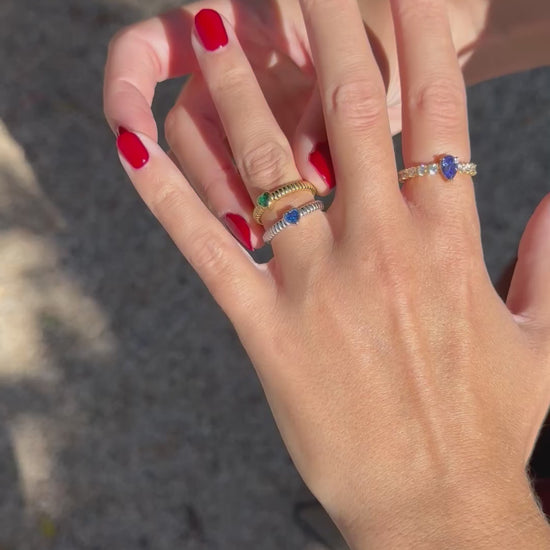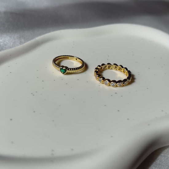 Un anillo especial, con corazón en color verde, que resalta por sus colores y su luminosidad.
