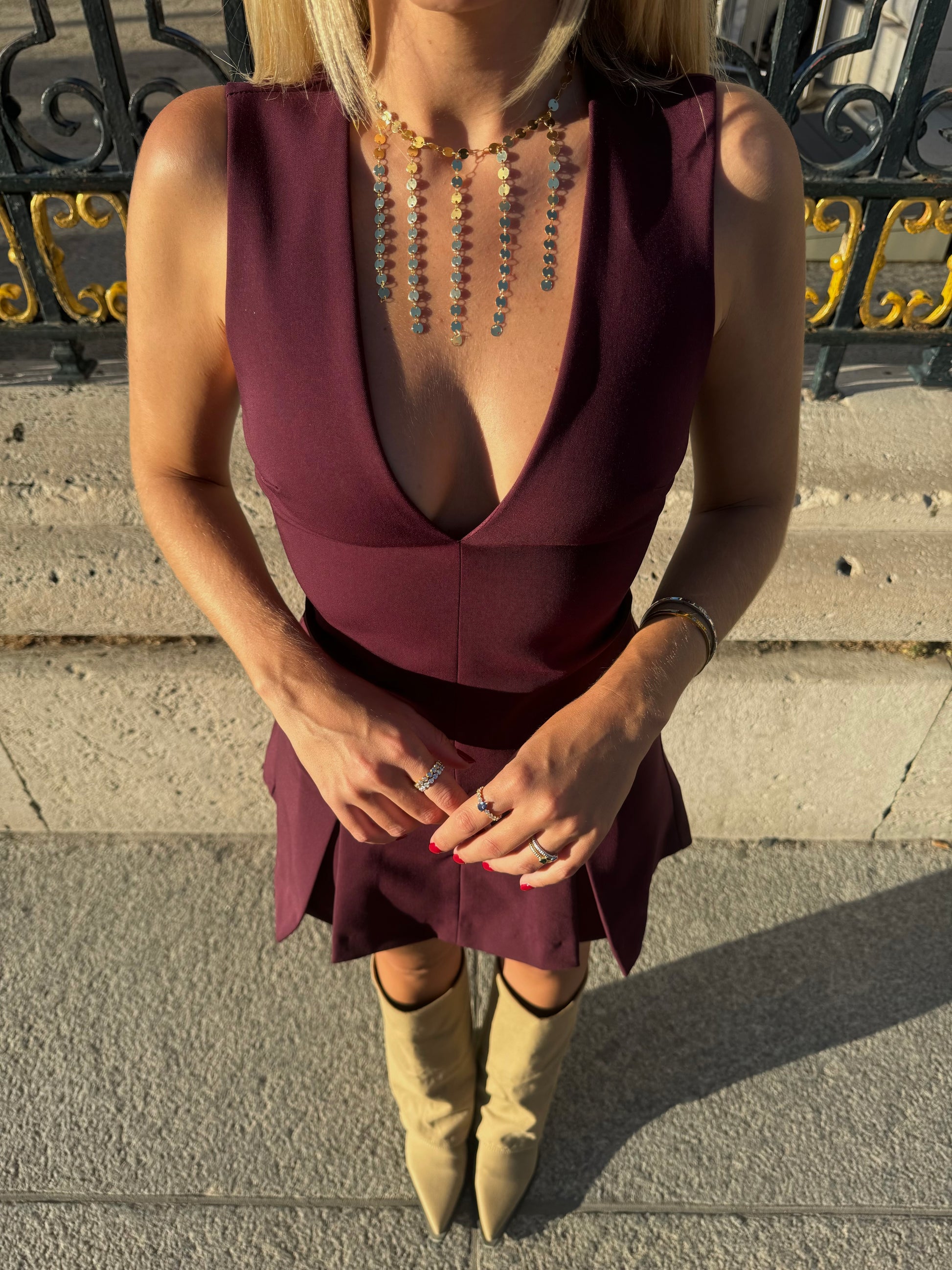 Ideal para resaltar tu escote, tanto en tus looks de día como de noche. Su brillo aporta una luz especial y transforma cualquier outfit, dándole ese toque que marca la diferencia.