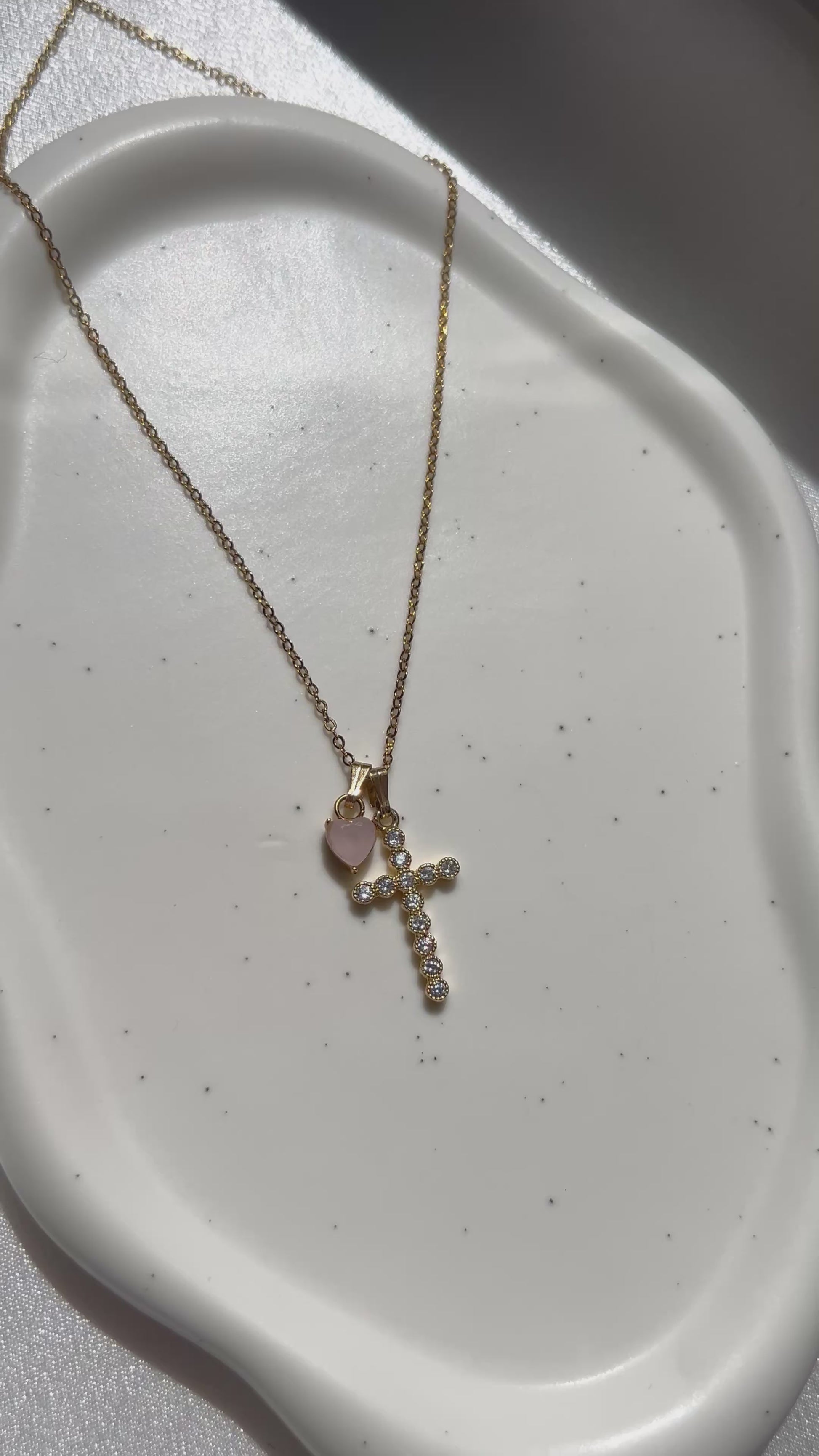 Cruz blanca con corazón rosa, una combi brutal y original, ideal para combinar con nuestras gotas.